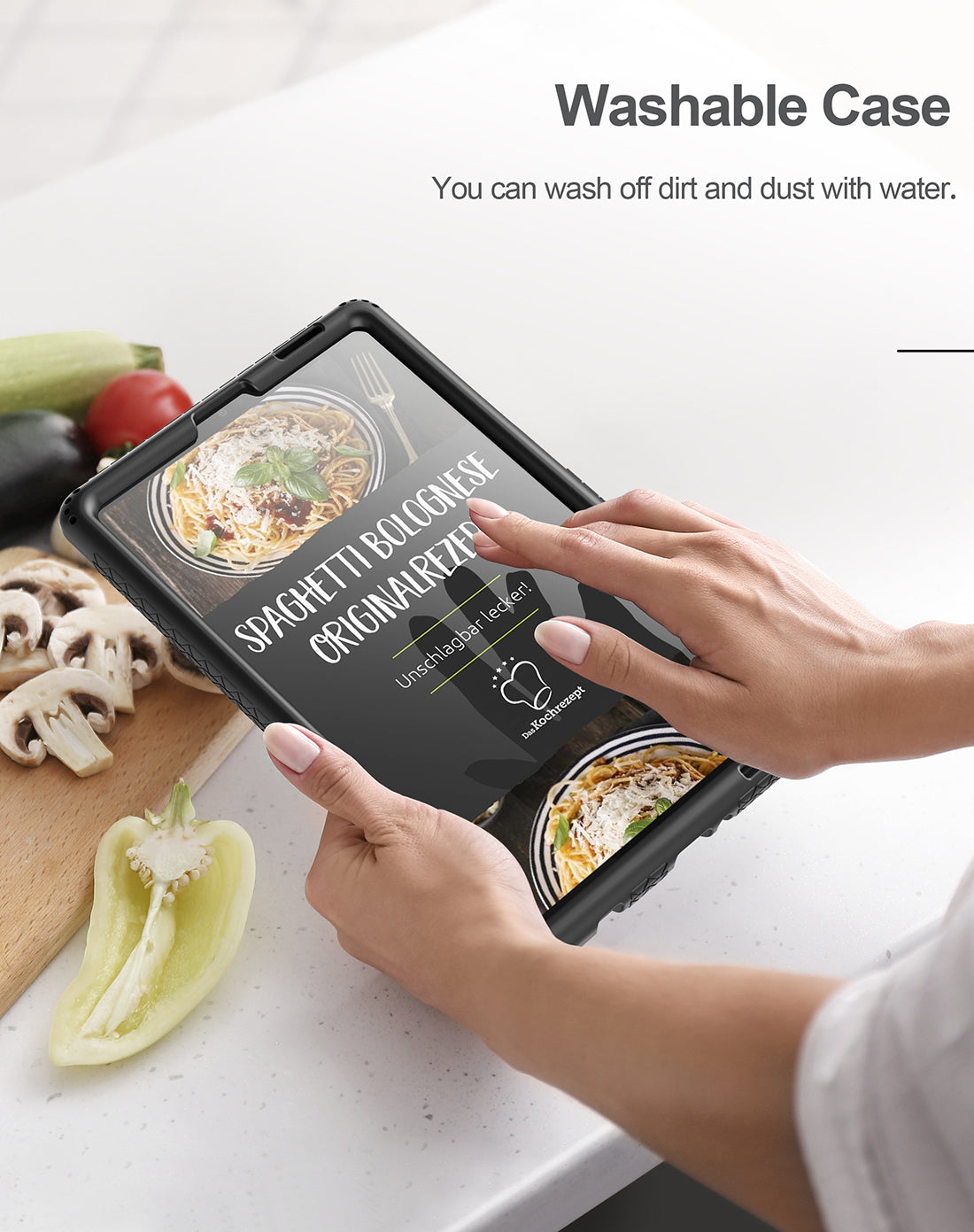 - Made with kid-friendly, non-toxic silicone. Includes tactile side grip and unique rear turtle shell design with raised supports for better grip and drop protection.