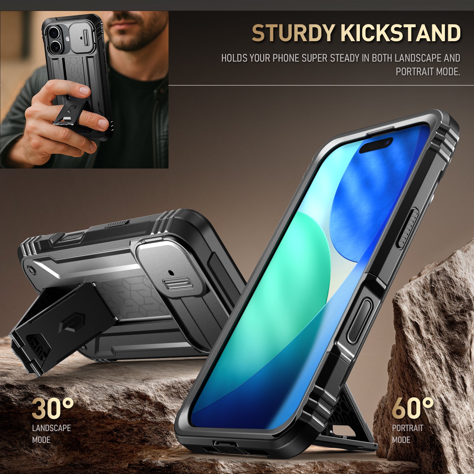 - [Phone Case with Kickstand] - Built-in Pull out kickstand for hands-free viewing in portrait or landscape mode