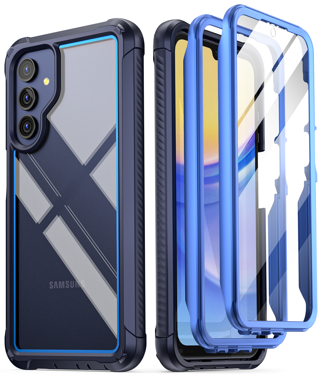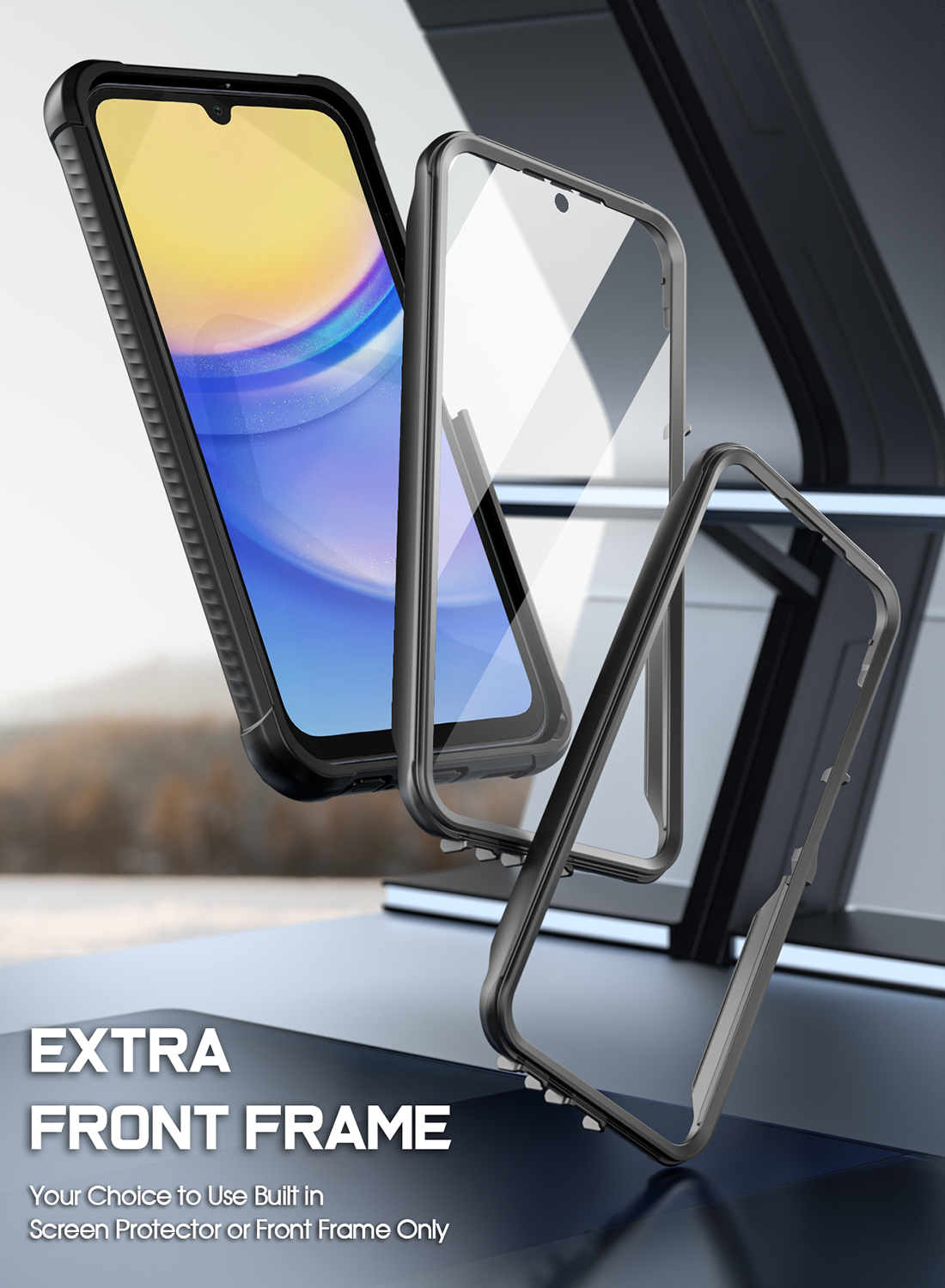 - Samsung Galaxy A15 Case with Screen Protector - Front polycarbonate casing with a built-in screen protector adds a layer of protection without affecting screen responsiveness.