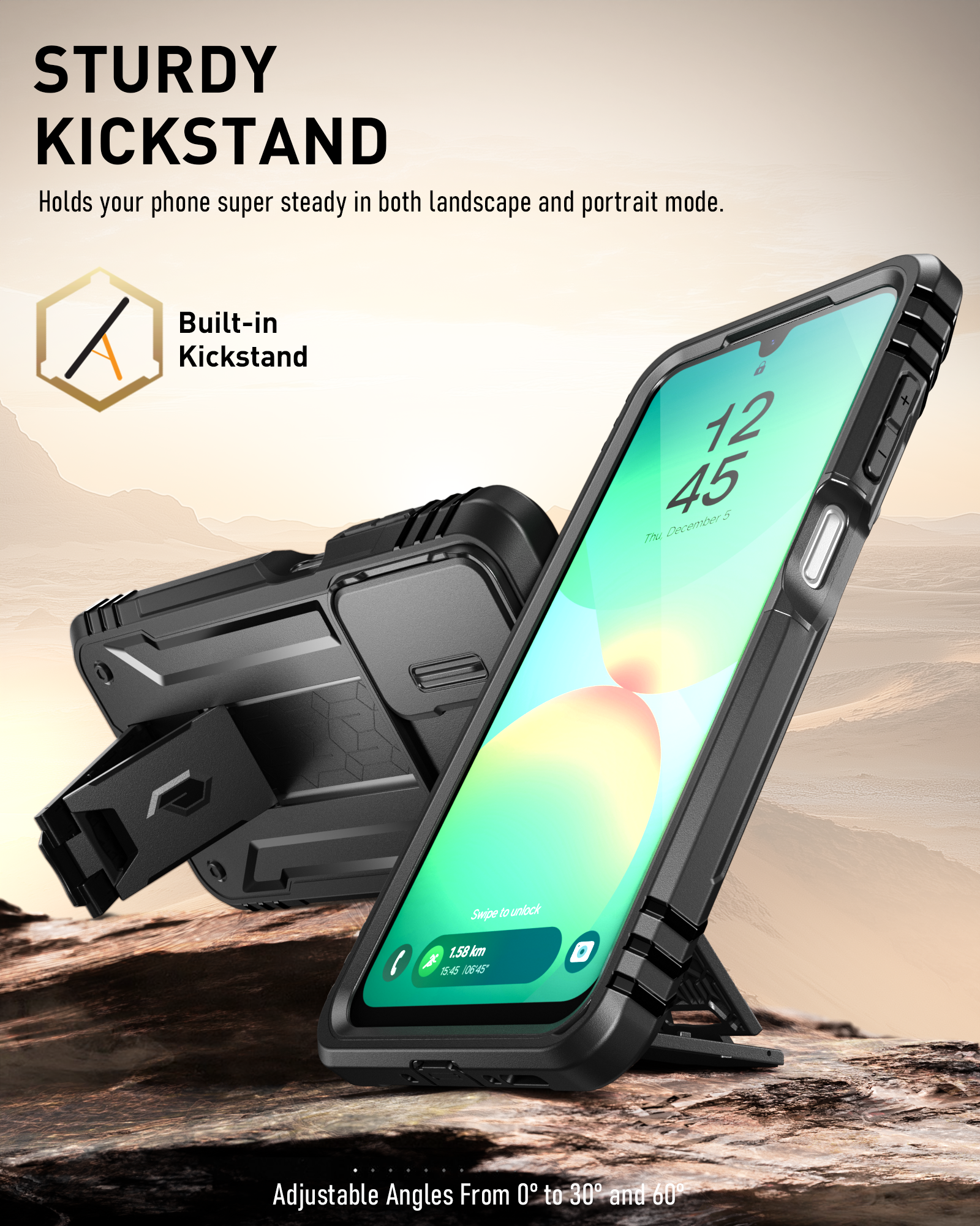 [Samsung Galaxy A26 Case with Kickstand] - Built-in Pull out kickstand for hands-free viewing in portrait or landscape mode.