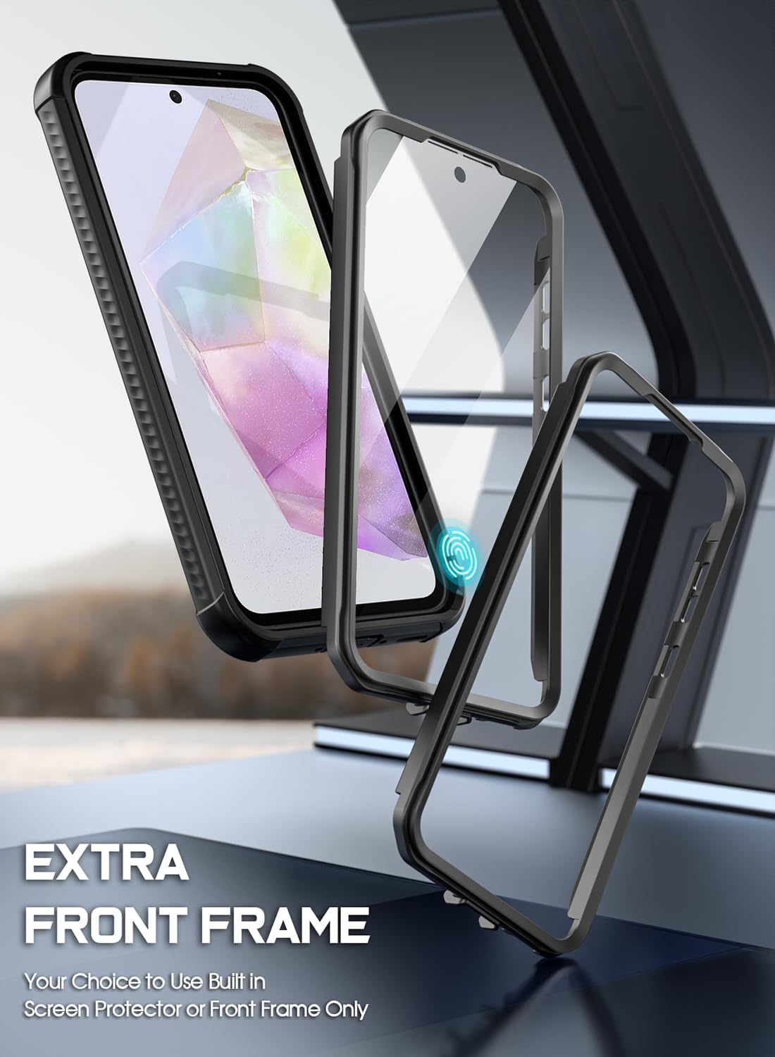 - [Samsung Galaxy A35 Case with Screen Protector] - Front polycarbonate casing with a built-in screen protector adds a layer of protection without affecting screen responsiveness.