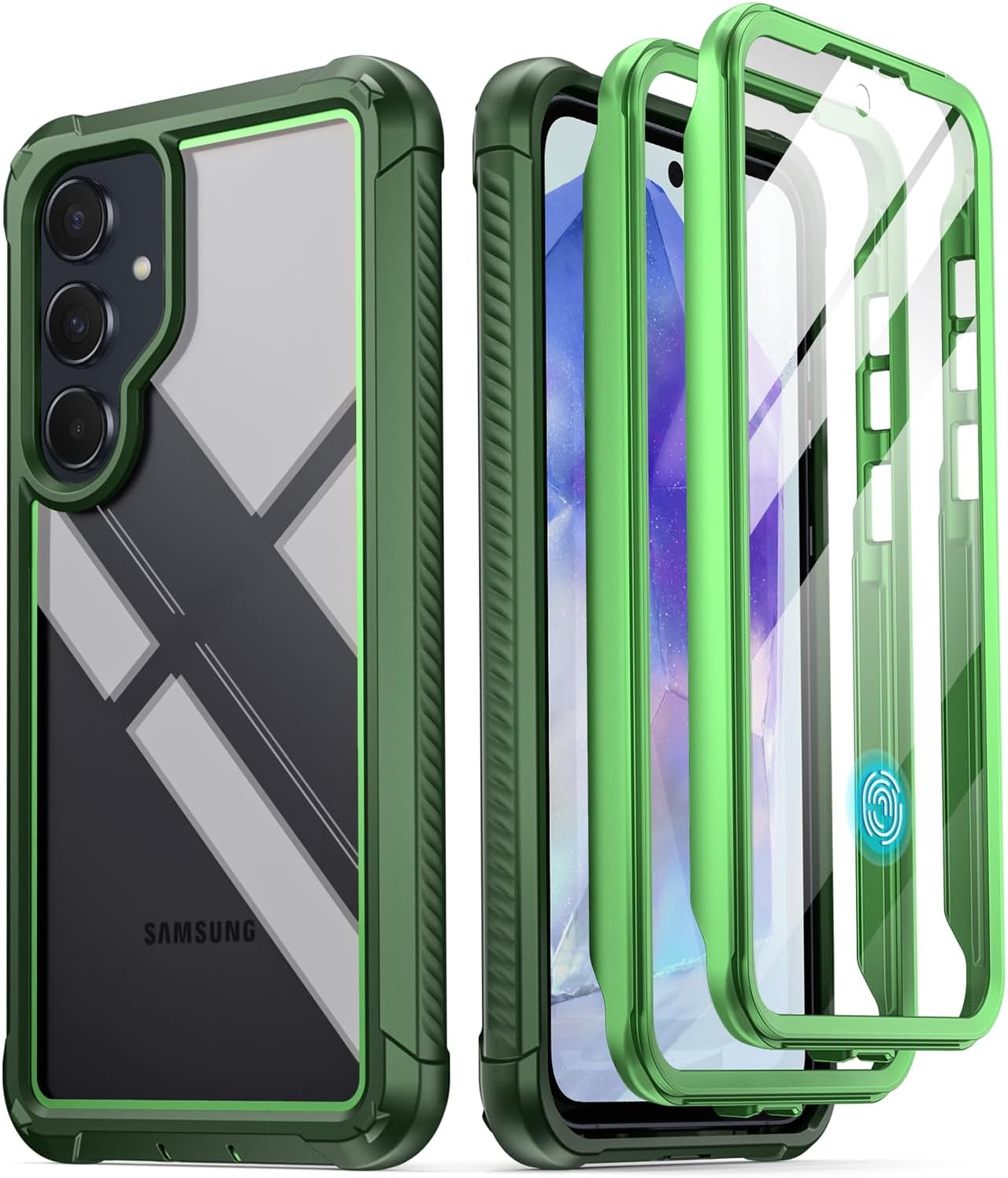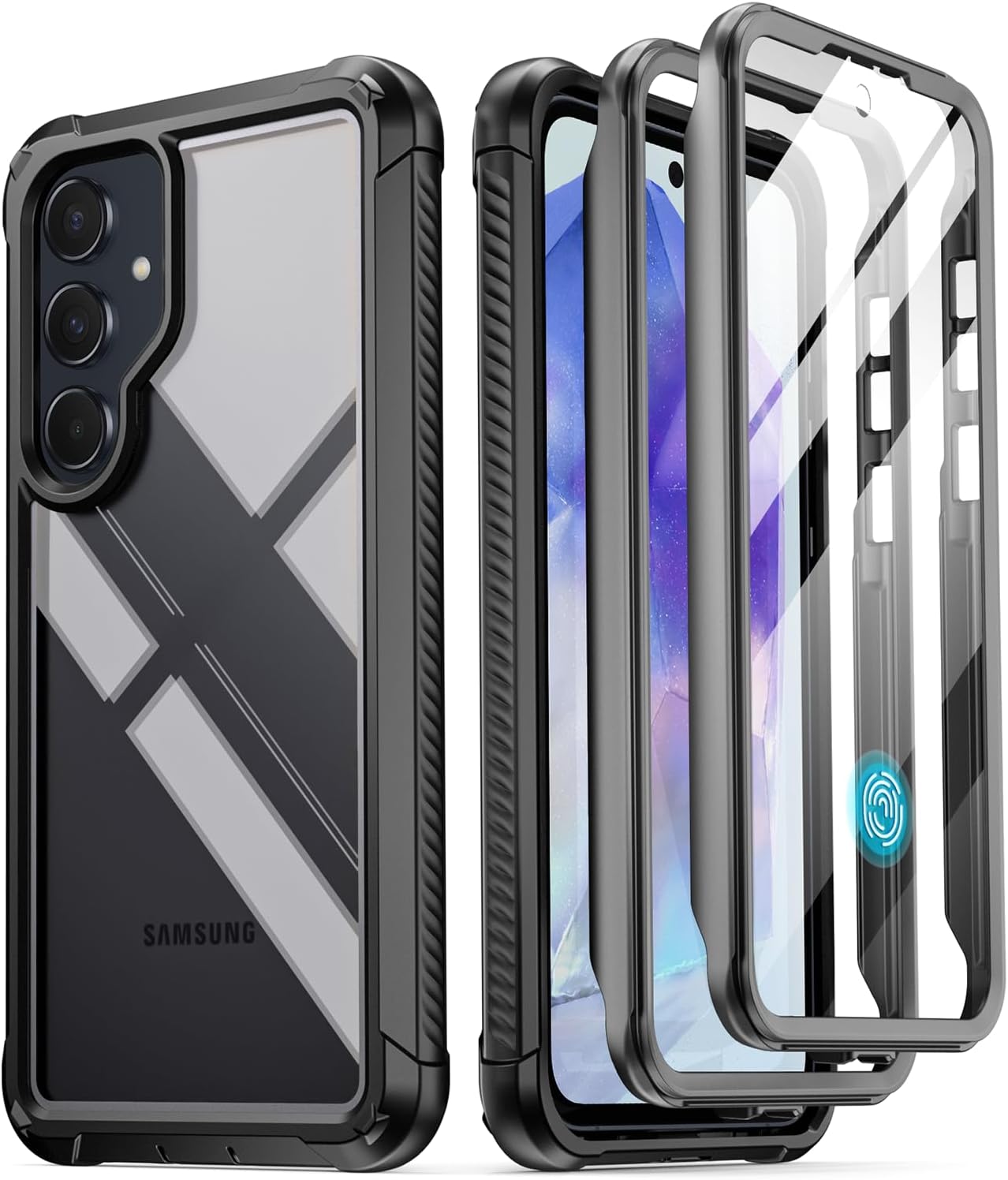 • [Samsung Galaxy A55 case with screen protector] - BUILT-IN-SCREEN PROTECTOR with Fingerprint stamp - MAKE SURE REMOVE ANY AIR BUBBLES BETWEEN FINGERPRINT SCANNER AND FINGERPRINT STAMP. Please carefully read FINGERPRINT STAMP TIPS on the DESCRIPTION SECTION and watch INSTALLATION GUIDE VIDEO, follow steps for smooth installation.