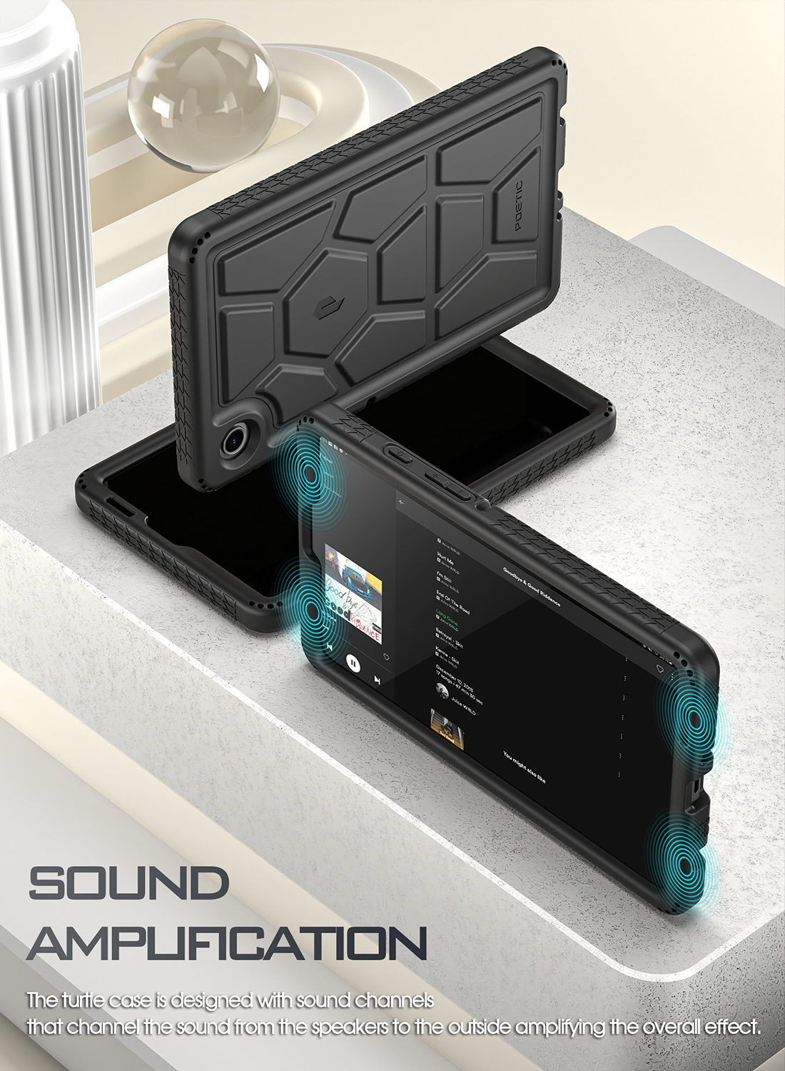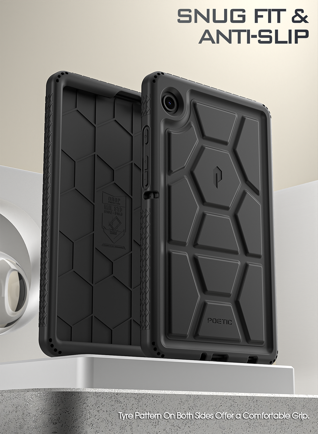 - Case for Samsung Galaxy Tab A9 8.7" - Made with kid-friendly, non-toxic silicone. Includes tactile side grip and unique rear turtle shell design with raised supports for better grip and drop protection.