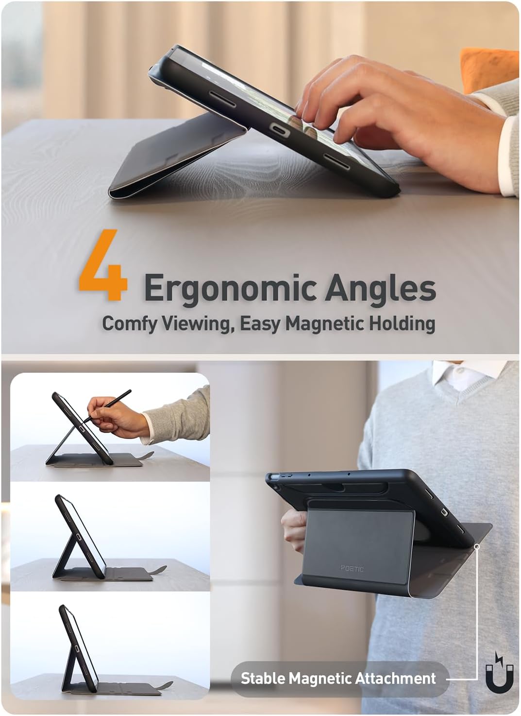 - Magnetic Adjustable Stand - Foldable cover with magnetic attachment transforms to stand that fits into adjustable groves to ensure easy, stable & most comfortable viewing angle