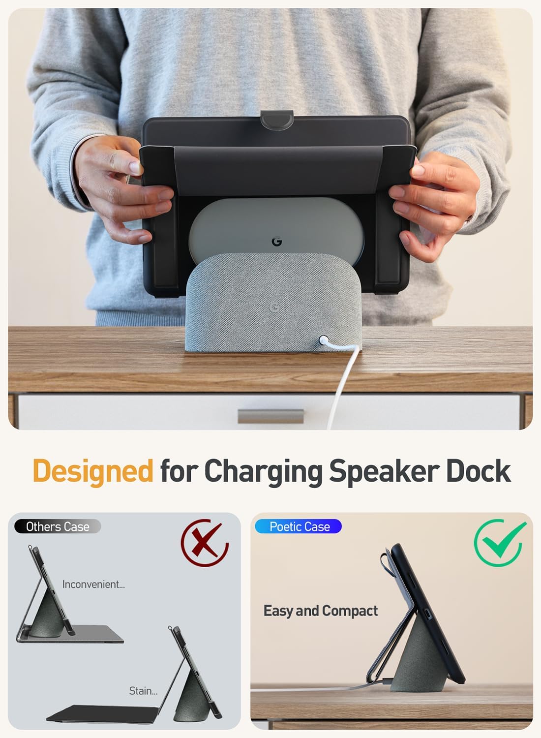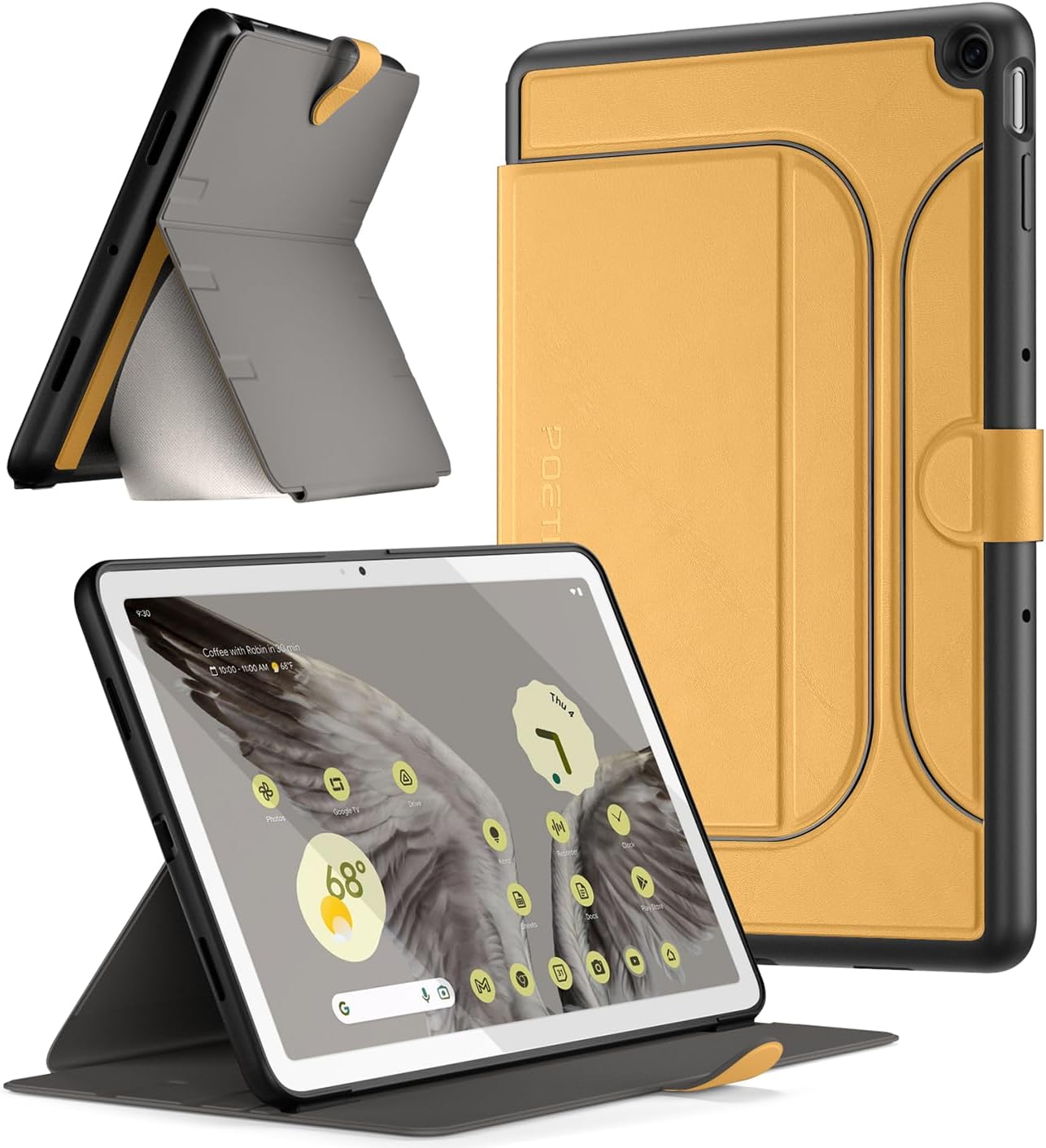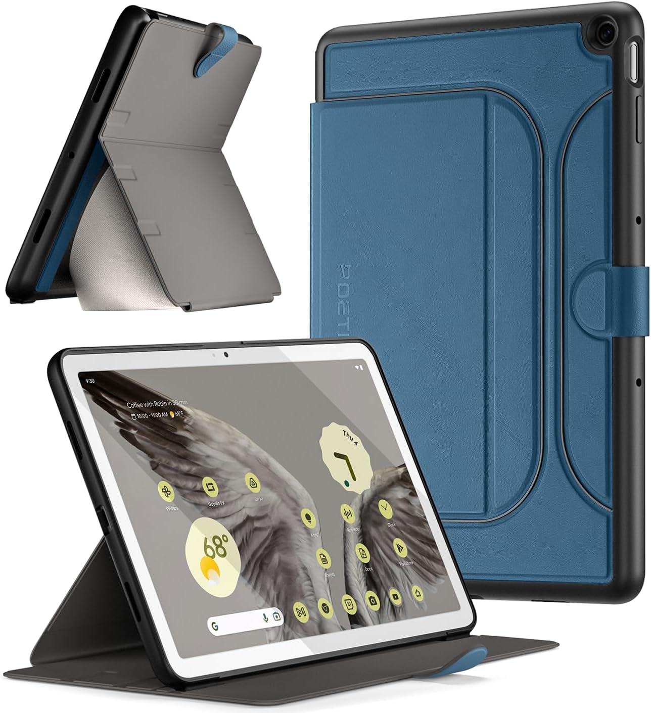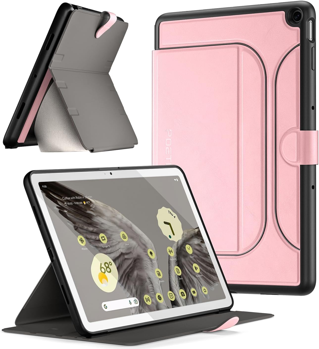- Slim and sleek all around protection- Premium microfiber material throughout the inside of the case. With interior shock-absorbing TPU bumper co-mold with polycarbonate to cradle & stabilize the Pixel tablet. Wrapped in a premium smooth faux leather texture folio case with secure magnetic wrap closure - Protect against all kinds of accidental drops and falls.