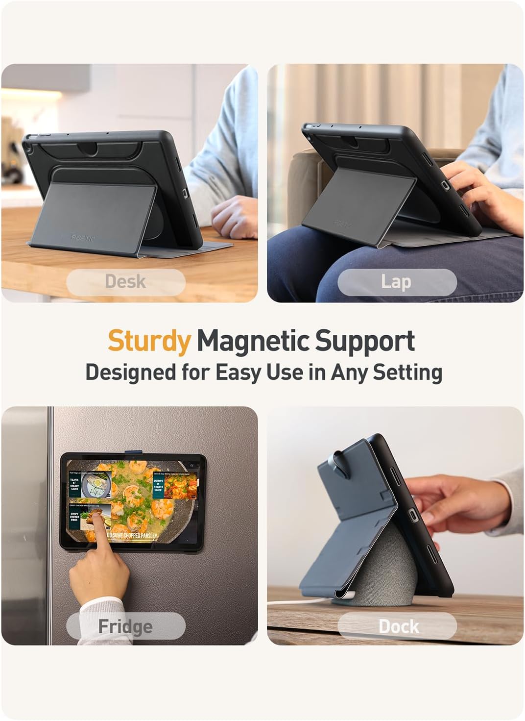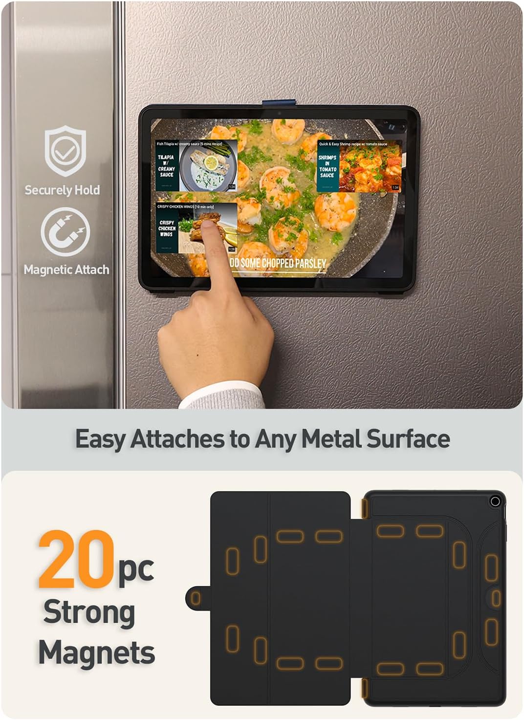 - Fidget Mount Case - Attach To Fridge or most metal surfaces for Hands free viewing while cooking, entertaining the family & more.