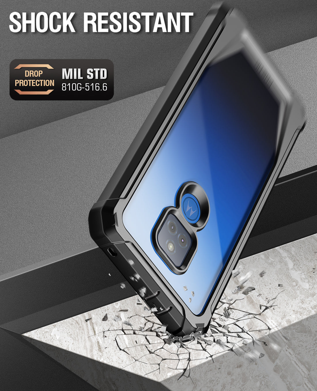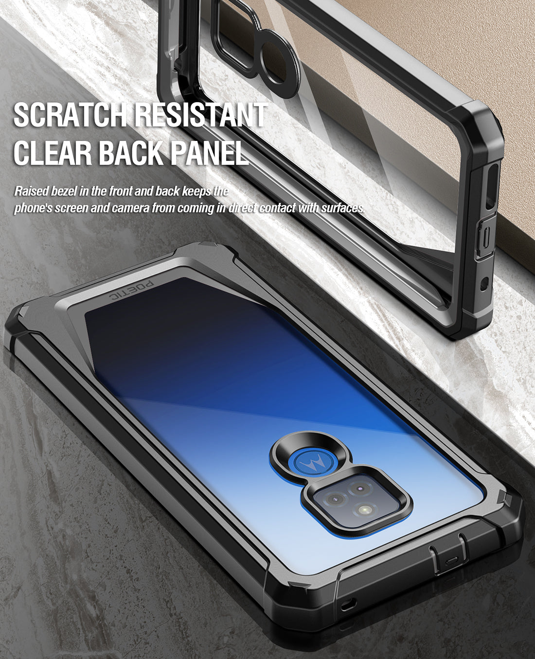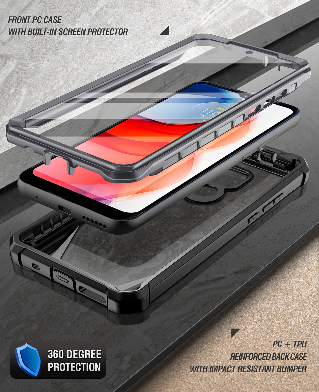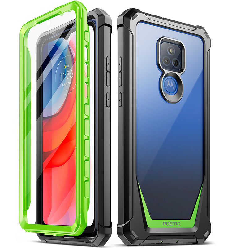 - MILITARY GRADE DROP TESTED MOTO G PLAY RUGGED CASE -Protects your Moto G Power from all angles. Includes: Built-in Screen Protector, Clear polycarbonate back, and TPU lining and Bumpers.