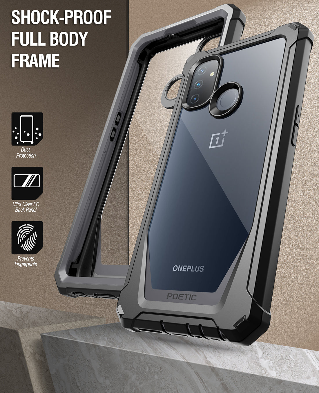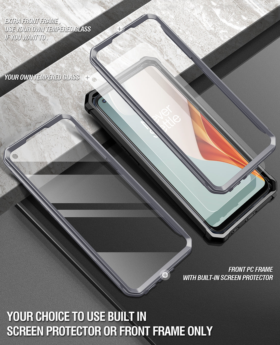 - Military Grade Drop Tested Protects your OnePlus Nord N100 from all angles. Includes: Built-in Screen Protector, Clear polycarbonate back, and TPU lining and Bumpers.