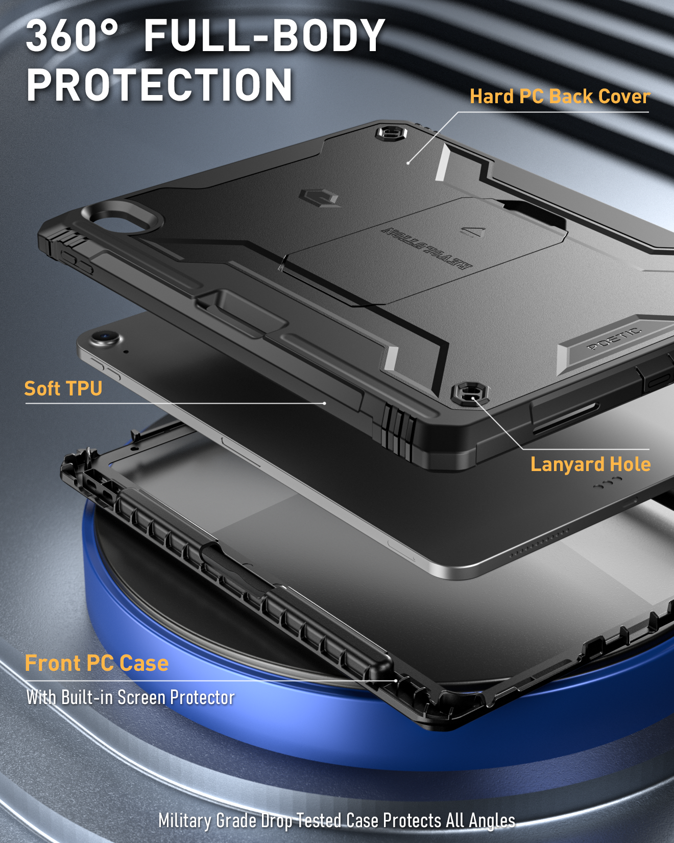 iPad Air 11 inch Heavy Duty Case - Composed of premium polycarbonate and shock absorbing TPU bumper for drop protection.