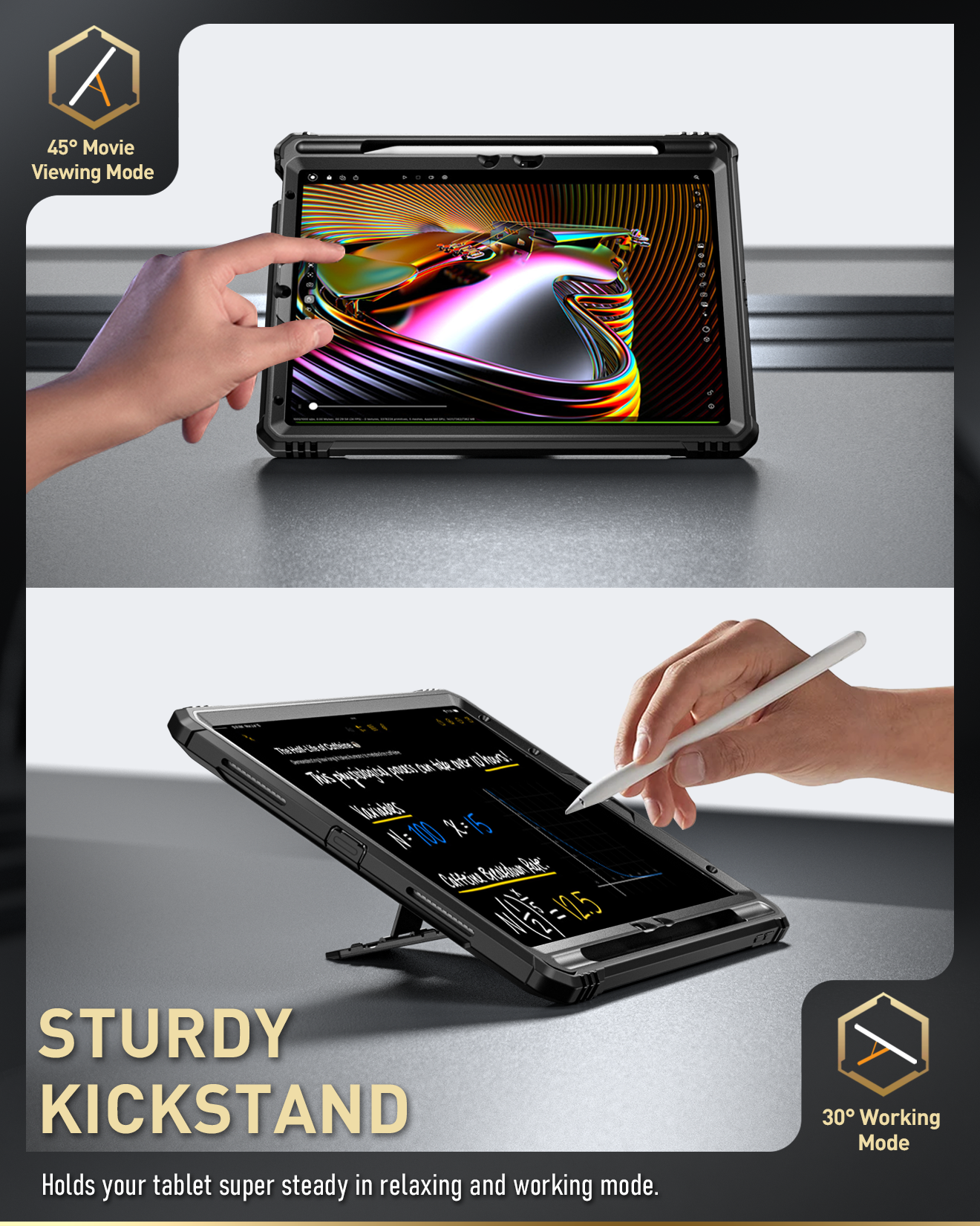 iPad Air 7th Gen Case - Front polycarbonate casing with a built-in screen protector adds a layer of protection without affecting screen responsiveness.
