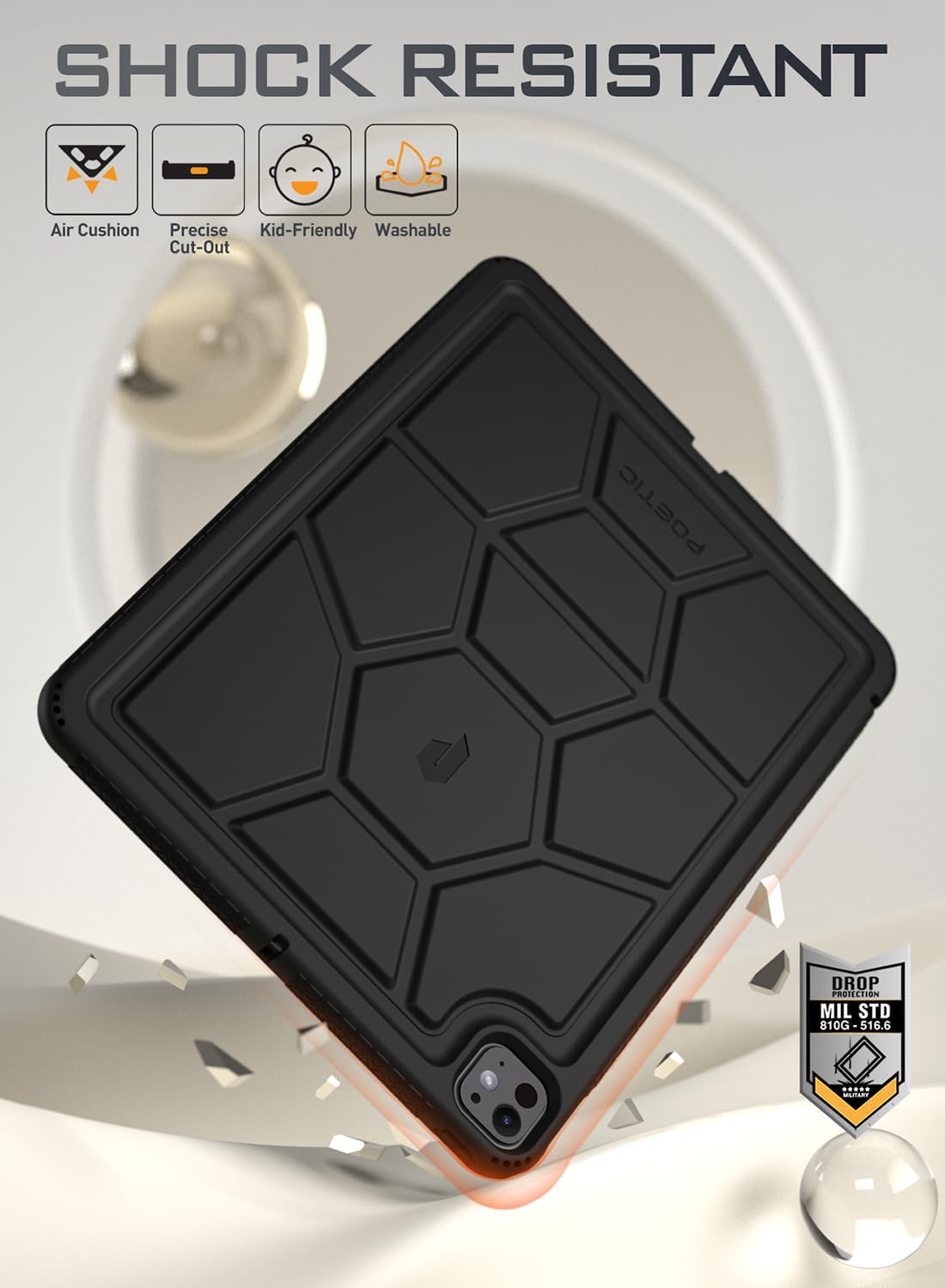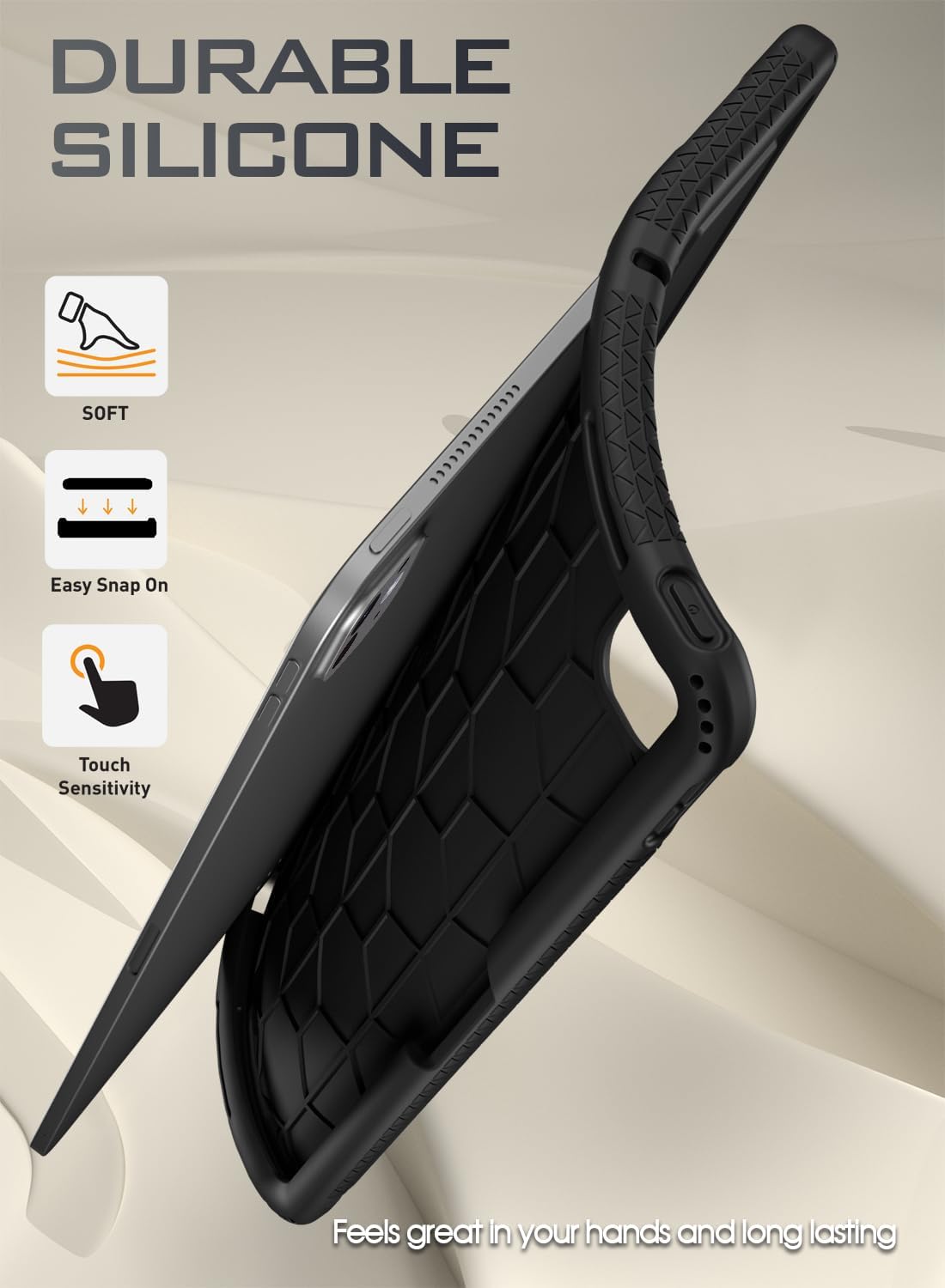 - iPad 13 Pro Case- Made with kid-friendly, non-toxic silicone. Includes tactile side grip and unique rear turtle shell design with raised supports for better grip and drop protection.