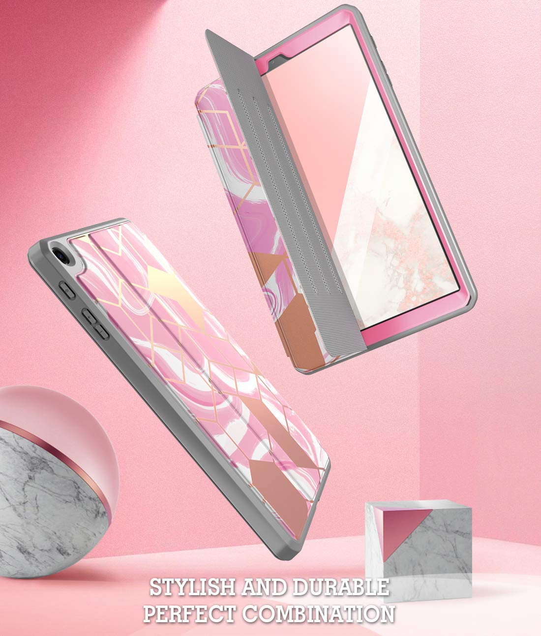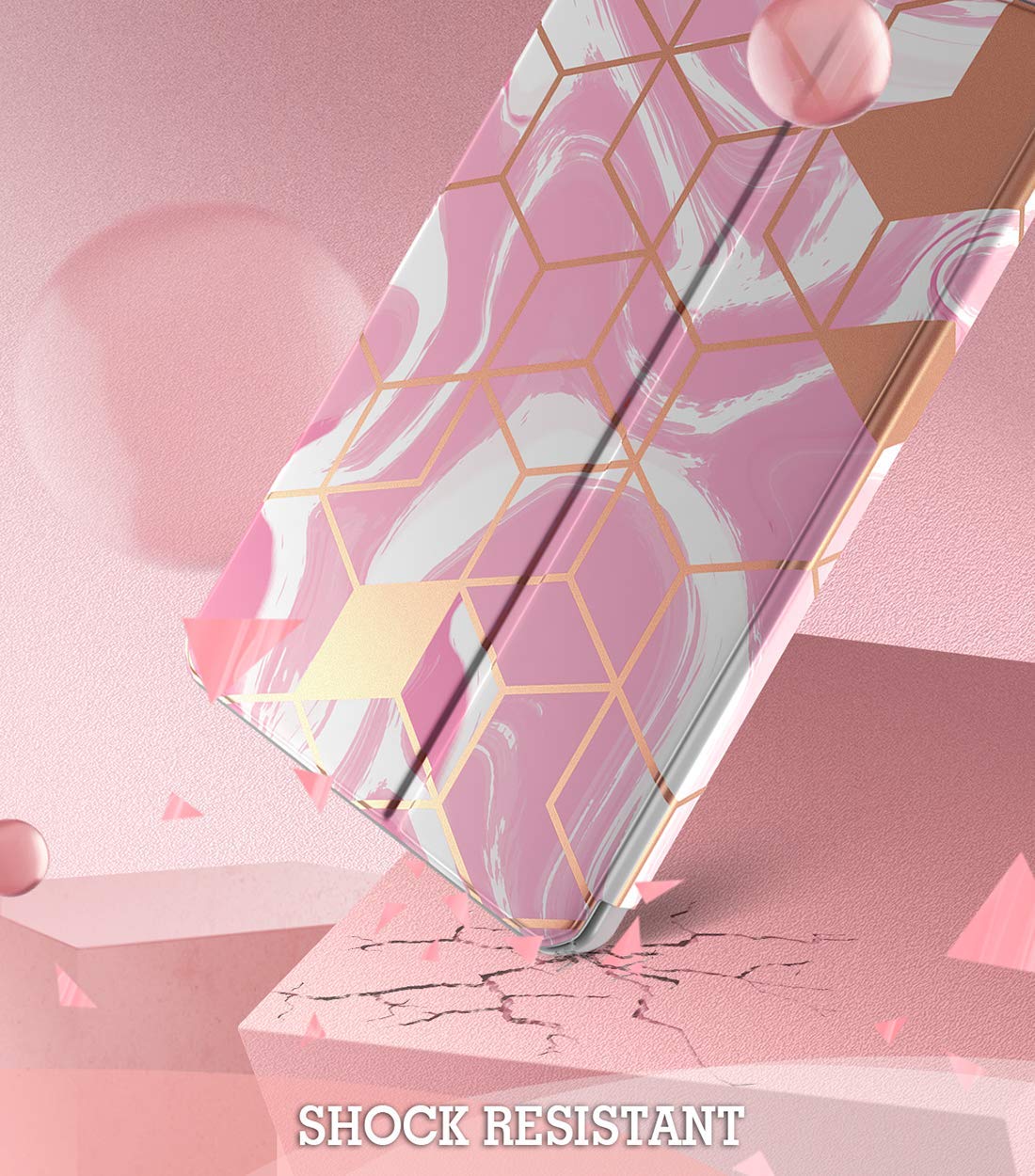 - STYLISH LIQUID MARBLE DESIGN - With interior shock-absorbing TPU bumper and built-in screen protector. Wrapped in a stylish Liquid Marble graphic design folio case. Add up to 360 degree triple layers protection. Protects against all kinds of accidental drops and falls.