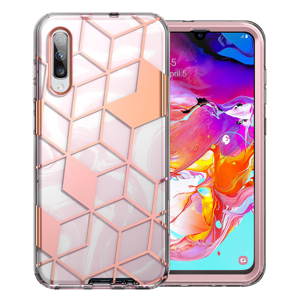 - STYLISH AND PROTECTIVE - Shock absorbent TPU lining wraps your phone safely and securely. Trendy Liquid Marble with golden or silver design lining scratch-resistant back protects your phone from scratch and fade, Touch-sensitive screen protector completes this 360-degree protection for your Samsung Galaxy A70.