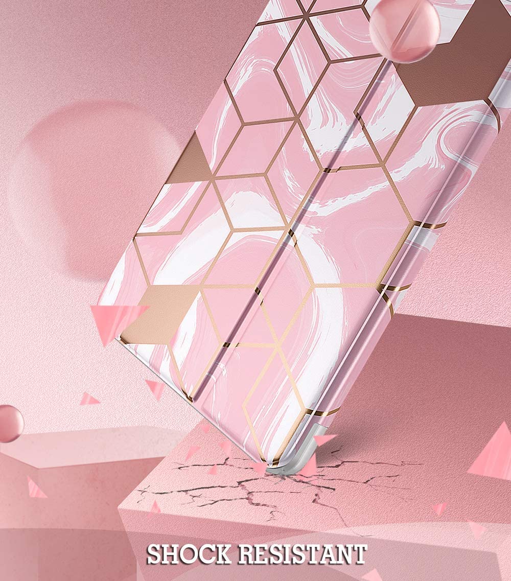 - STYLISH LIQUID MARBLE DESIGN - With interior shock-absorbing TPU bumper and built-in screen protector. Wrapped in a stylish Liquid Marble graphic design folio case. Add up to 360 degree triple layers protection. Protects against all kinds of accidental drops and falls.