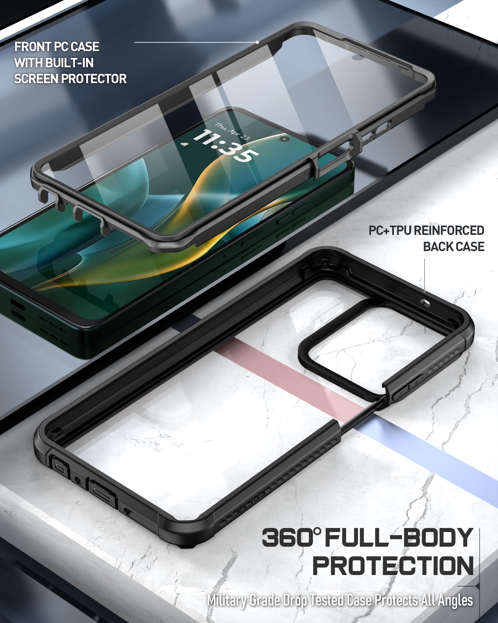 [Moto G 5G 2025 Case with Screen Protector] - Front polycarbonate casing with a built-in screen protector adds a layer of protection without affecting screen responsiveness.