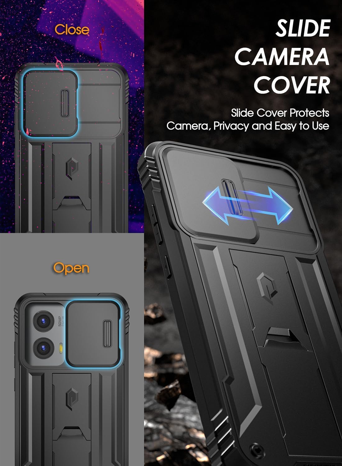 - [Slide Camera protection] - Make the revolution series even better with slide camera cover. The camera slider protects your camera lens from scratches, bumps & shocks.
