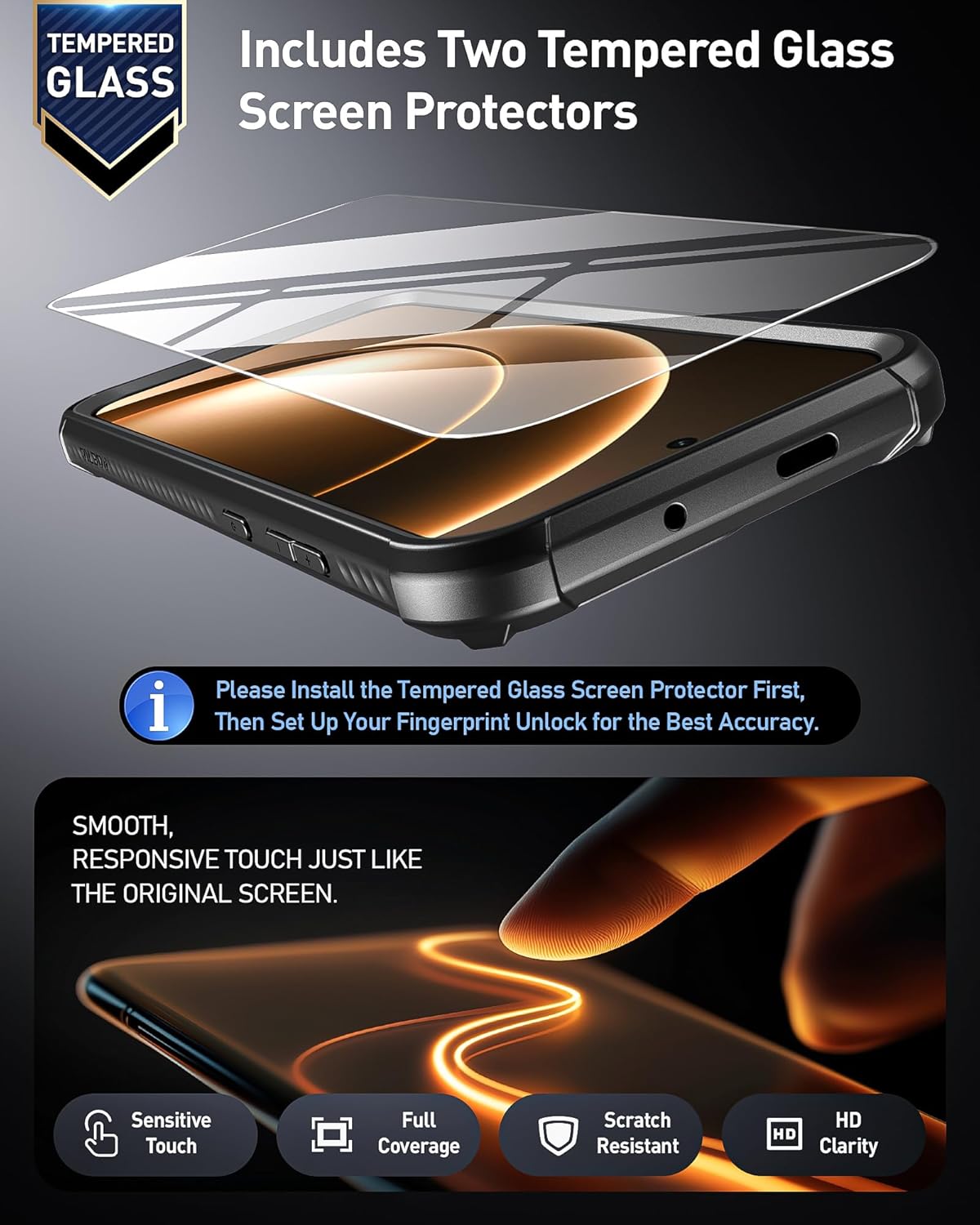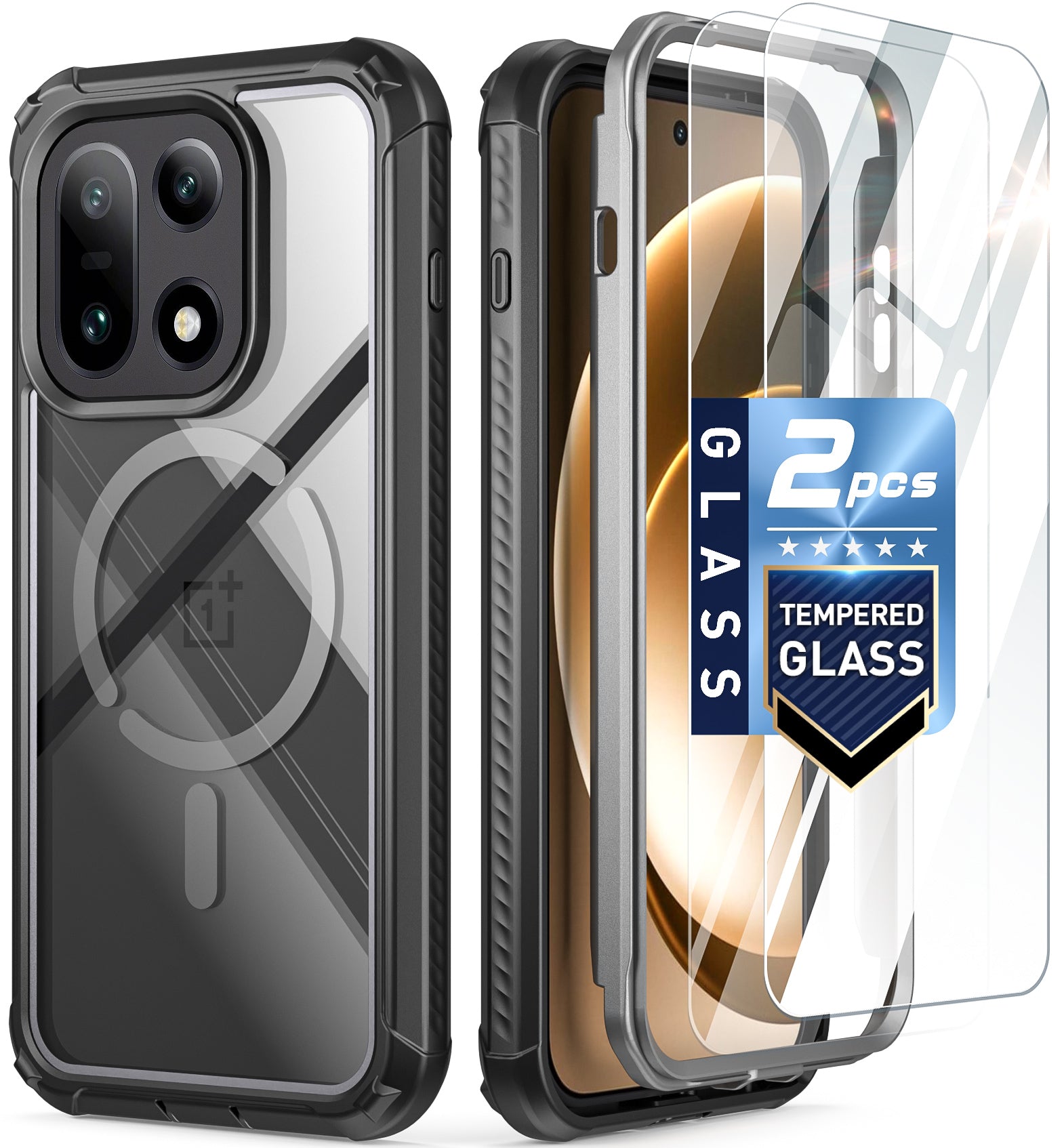 - [Tempered Glass Screen Protector ] - Included two tempered glass screen protector, no compatibility worries—this premium tempered glass is custom-fit for your OnePlus 15 5G. It offers ultra-clear visibility, resists scratches and smudges, and absorbs minor impacts—all while ensuring smooth and responsive touch.