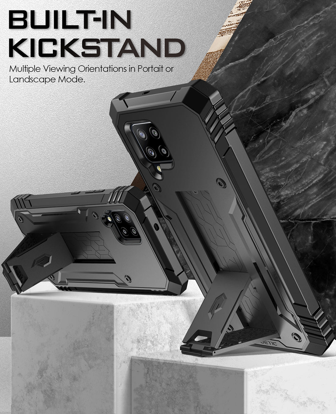 - Pull out kickstand for hands free usage.