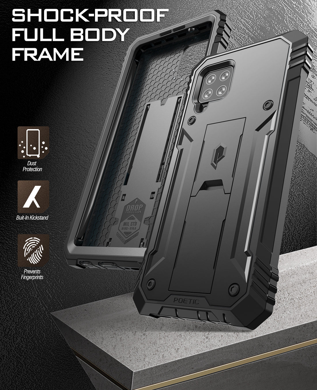 - For people who don't like to use built in screen protectors, Poetic has included an extra front frame to use with your own tempered glass.