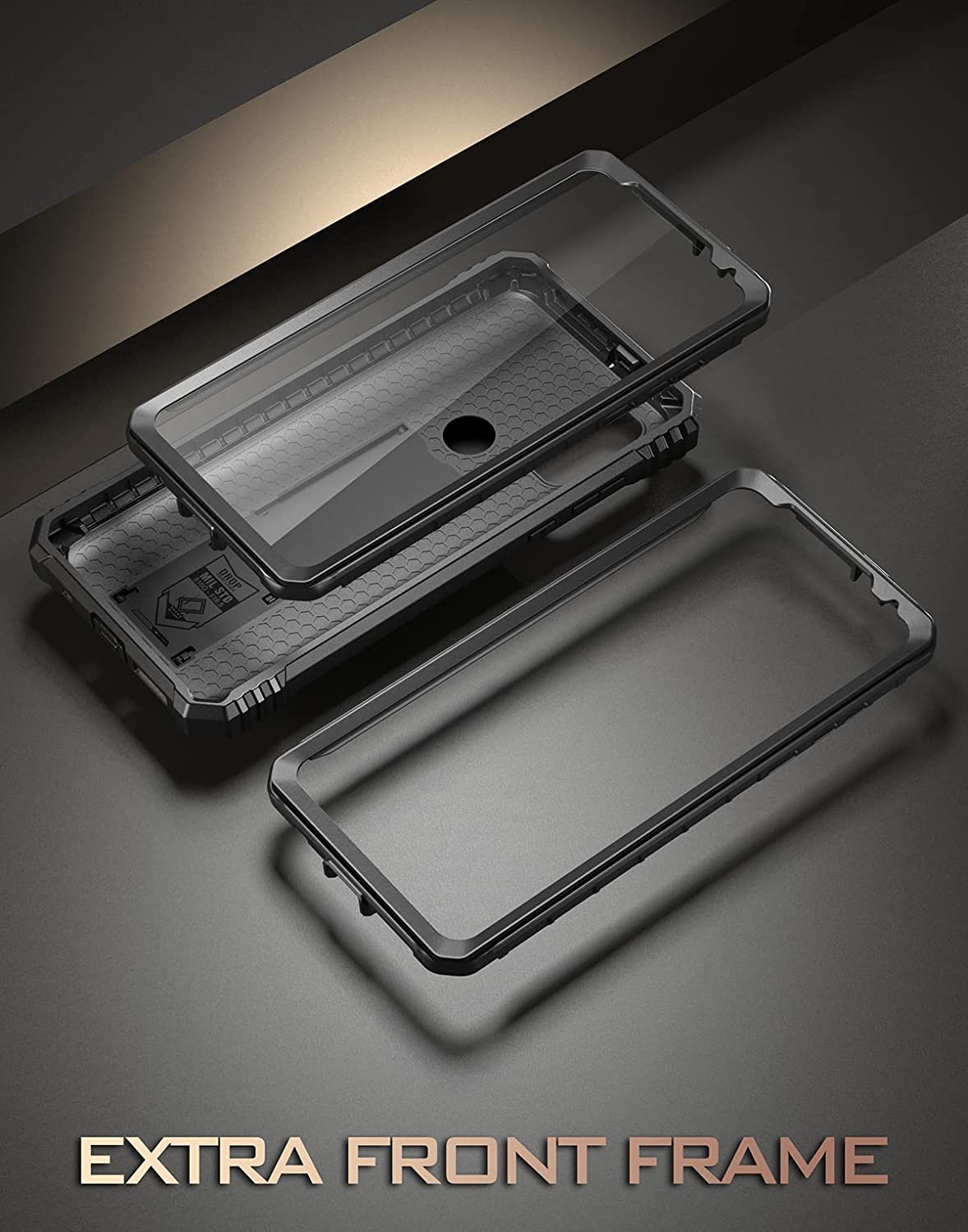 - EXTRA Front Frame, for people who don't like to use built in screen protectors, Poetic has included an extra front frame to use with your own tempered glass.